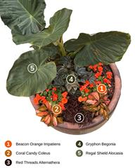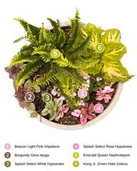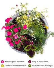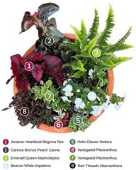 Do you stick to the same plants every year because you don’t know what else to do? We’re here to show you just how fabulous your shade containers can be. Use the diagrams below to copy the exact designs or pick and choose plants to make your own creations!
