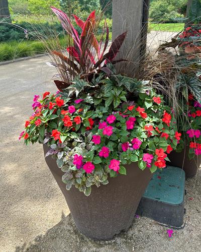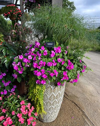Tropicals are ALWAYS on trend. Make your own tropical oasis, and add impatiens to up the color power in your shade garden!